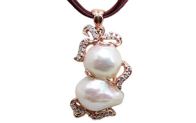 Ciondolo Argento 925 placcato oro rosa, perla burma irregolare incastonato con cristalli bianchi da 1,5mm peso grammi 6,9 Laccio lunghezza 42cm